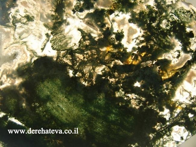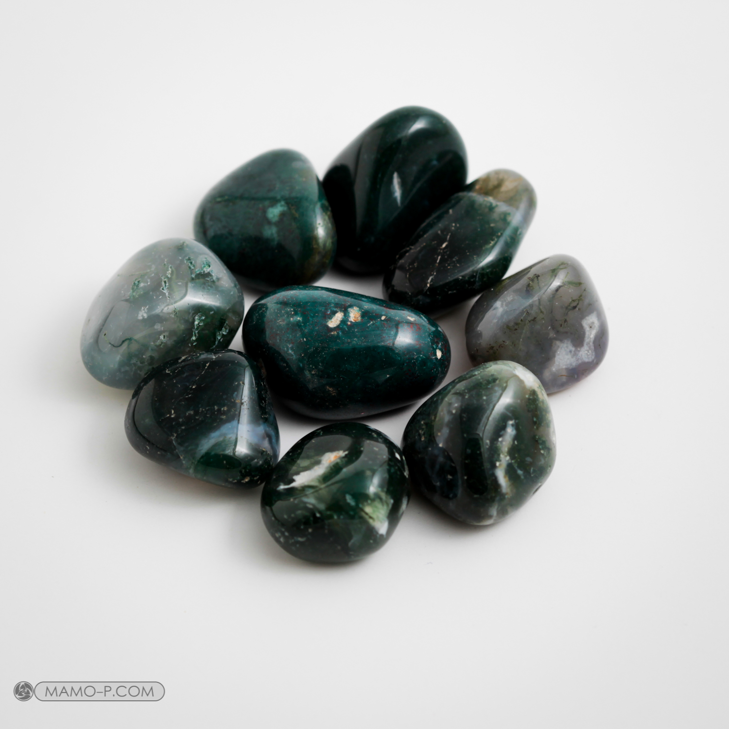 שימוש אנרגטי: מהדהדת לכוח המרפא של הטבע והצמחייה. אבן מאזנת ומרגיעה. מתאימה לאנשים שבעבודתם יש להם קשר ישיר עם הצמחייה, כמו: גננים, חקלאים, אנשי בוטניקה ויערנים. בנוסף למאפייניה הייחודיים יש לה את כל התכונות הבסיסיות של אבני האגת. מזכירה למשתמש בה את העוצמות הפנימיות שקיימות בתוכו ועוזרת להתחבר אליהן מתוך מקום שקט.