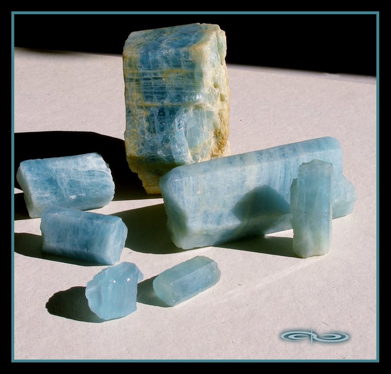 תיאור: אבן מחורצת לאורכה. הסוג המפורסם ביותר של תרשיש (בריל). יש סברה שהיא אבן החושן “תרשיש”, המשויכת לשבט אשר. מתגבשת בגבישים משושים מאורכים. הצבע נע בין תכלת בהיר לירקרק שקוף. פירוש המילה “אקווה” בלועזית הוא: מים. פירוש המילה “מרין”: ימי, שמשויך לים. נחשבה מאז ומתמיד כאבן שמתאימה לעוסקים במים או בים: דייגים ויורדי-ים למיניהם, חוקרי-ים, זיאולוגים וארכיאולוגים ימיים, צוללנים וכו’.