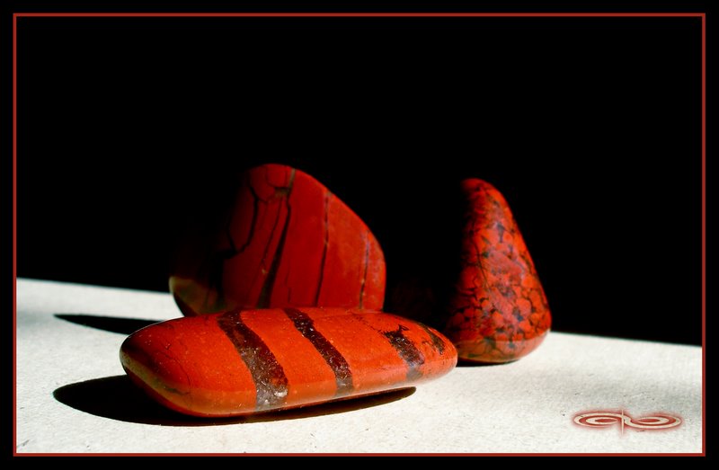 ג’ספר אדומה/כתומה: מזכירה בתכונותיה את הקרנליאן בכך שממריצה ועוזרת לממש דברים בפועל. ההבדל העיקרי הוא באיכות האנרגטית: בעוד שהקרנליאן מבטאת אנרגיה נשית מעודנת, מתדרת הג’ספר האדומה-כתומה אנרגיה גברית צפופה ומעשית יותר. מקושרת לצ’קרת הבסיס ומסמלת חיבור לאדמה, כוח-חיים בסיסי והגנה מפני אנרגיות שליליות. מצוינת למצבי דלדול אנרגטי וטובה ללוות מדיטציה. עושה איזון כללי למערכת האנושית ומצוינת כ”רפואה מונעת”. מגבירה חושניות ומאזנת את החשק המיני, בעיקר כשהוא נמוך. במקביל מגבירה את המוטיבציה והחשק ליצור בהיבט המקצועי. עוזרת להלחם בשגרה, ולהמשיך לתפקד באותה התלהבות כמקודם. בפיזי: מתאימה לשמירה על הבריאות ומגבירה את החוסן והסיבולת של הגוף הפיזי. מאזנת את צ’קרת הבסיס ומחזקת את הקרקוע. מזרזת החלמה ממחלה.