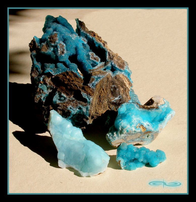 מראה: בצורתה הגולמית מופיעה בדרך כלל כגוש גרגירי, משטח, או נטיפים מאורכים. הצבע הוא לרוב תכלכל או ירקרק ולעיתים רחוקות יותר ורוד, חום, צהוב ואפור. שמה נגזר מהשפה היוונית, בה פרוש המילה “המי” הוא חצי, ו”אמורפי”: חסר-צורה, זאת למרות שיש לה מבנה קריסטלי ברור. השם ניתן לה כנראה בזכות יכולתה לעזור למשתמש בה לשאוף להוויה אמורפית (רוחנית).