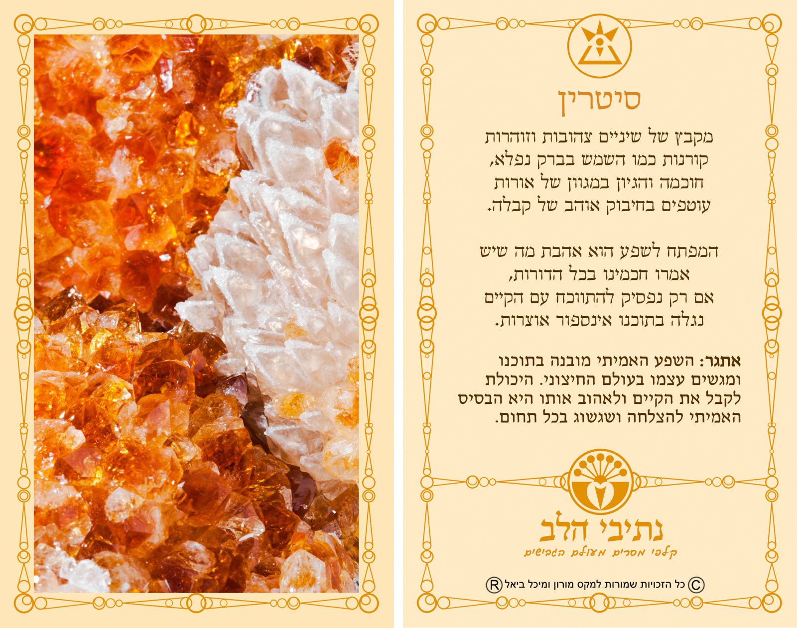 מראה ותיאור כללי: מתגבשת בגושים, שיניים, ומושבות. הצבע הכללי הוא צהוב, בגוון שנע בין זהוב בהיר כמעט לבן, לאדום-כתום ועד חום כהה. מקור השם מהמילה הצרפתית “סיטרון” שפירושה: לימון. אחת האבנים הנפוצות והמוכרות ביותר שעבור רבים מייצגת את השפע. רוב אבני הסיטרין כיום הן אבני אמטיסט שעברו תהליך של חימום טבעי או מלאכותי.