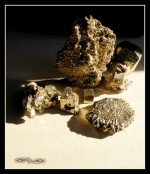 מראה: אבן מתכתית מוזהבת. מתגבשת כגושים חסרי צורה, מושבות גרגיריות, כדורים וקוביות. מקור השם מיוונית ופירושו: “האבן שיוצרת אש”, שם שנגזר מהמראה שלה שהוא של ניצוצות זהובים. מרבה להתגבש עם קריסטל-קוורץ. לעיתים נראים פסים או חלקיקי פיריט בתוך מינרלים אחר, כמו לאפיס, סאנסטון, פלואוריט ואוונטורין.