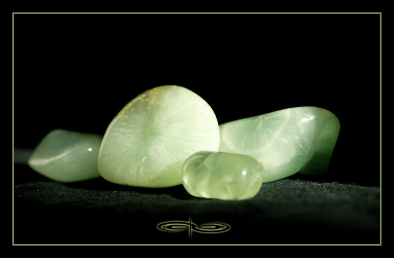 מראה כללי ותיאור: מתגבשת בעיקר בגושים ובמושבות, לעיתים בעלי אופי גרגירי. בחנויות לממכר קריסטלים נפוץ מאד למצוא אותה במושבות או חלוקי-נחל. צבעה על-פי-רוב ירקרק בהיר בעל גוון שמיימי. מופיעה גם בירוק כהה, אפור, לבן, צהוב ושקוף חסר-צבע. בגרסתה הירוקה עשויה לעיתים להזכיר את הג’ייד. עושה שיתופי פעולה ומתגבשת לעיתים קרובות עם קריסטלים נוספים כמו קריסטל-קוורץ ואפופילייט. נוכל לפגוש אותה גם בשילוב עם אפידוט וקאלקו-פיריט.