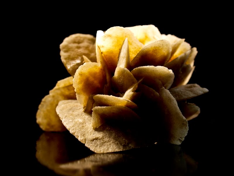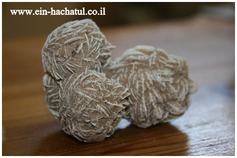 מראה: שמה נובע מהמקום בו היא מתגבשת, לרוב באיזורים מדבריים בעיקר באיזור מקסיקו במקומות בהם היה בעבר מקור מים, שהתאיידו לאורך השנים, תהליך היוצר תרכובות שנקראות קריסטלי-חול. שושנת המדבר מורכבת מקריסטלים כאלה. ואכן, ניתן לראות בתוכה נצנוצים. המראה הנפוץ ביותר שלה הוא של עלים קטנים מחומר דמוי גבס שמשתלבים זה בזה ויוצרים צורת כדור. הצבע בדרך כלל לבן עד חום, לעיתים עם גוון ורדרד או סוגים שונים של צבע קרם. ניתן למצוא אותה במושבות שכל אחת עשויה ממספר כדורים כאלה משולבים זה בזה. מתגבשת גם בצורת כנפיים או משטחים שנראים כמו פרח פתוח תצורה זו נקראת גם Angel-Wings או כנפי-מלאכים.
