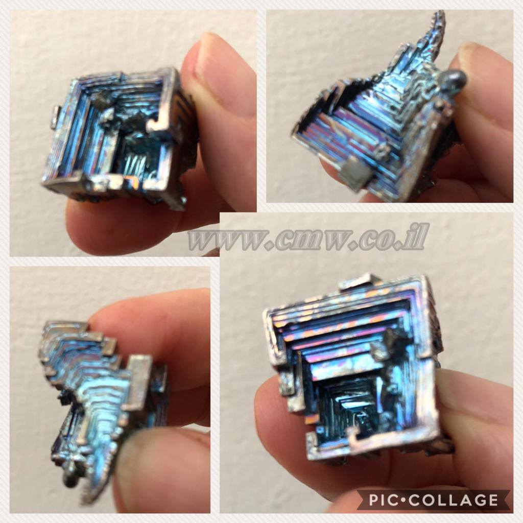 מידע גימולוגי:היא יסוד, ןהנוסחה הכימית היא: Bi  הוגדרה רשמית  לראשונה ב-1753 על ידי המדען הצרפתי קלוד גאופרוי. לגבי מקור השם ישנן כמה סברות, הרווחת מביניהן טוענת שהמקור מגרמנית, מהמילים “ווייס מס” שפירושו: חומר לבן או “וויט-מוט”: מינרל לבן או חומר לבן. המשקל הסגולי הממוצע 9.75 גרם לסמ”ק וצורת ההתגבשות הקריסטלית הקסהגונלית-משושה.